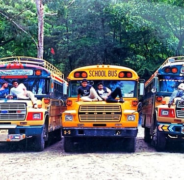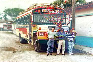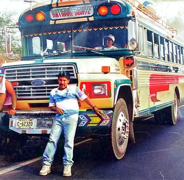 En 1996, Israel Carmona comenzó a comprar autobuses escolares desactivados en Estados Unidos, restaurarlos con dedicación y conducirlos hasta Guatemala. Lo que comenzó como una solución práctica se convirtió en un símbolo de creatividad, resiliencia y orgullo cultural. Aquellos autobuses amarillos, antes olvidados en estacionamientos del desierto, renacieron como vibrantes camionetas pintadas con una fusión del arte chicano nuevomexicano y la estética maya kaqchikel.